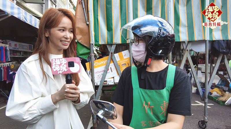 出身苗栗的「客家妹」陳明珠,在竹東市場受到熱情歡迎,嚐美食、歡唱樣樣來,不過時間來到下午,人潮漸散,菜市場快收攤了,明珠還沒找到拜訪家庭,他的目光望向水果攤年輕老闆夢婷。