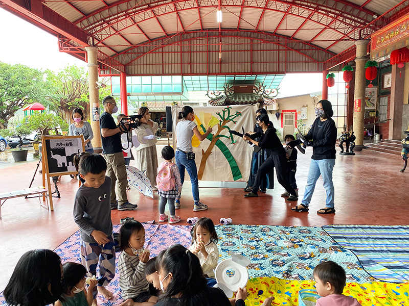 ![]() 台語親子共學團在廟口活動 囡仔窟當中,還有另一位媽媽叫佩姍,在社群裡處理各種庶務,她曾經是一位在台中大專院校工作的心理諮商師,婚後直到生了大女兒才搬到新竹,後來二女兒和小兒子又陸續出生,平日白天總是獨自一打三,讓上班中的老公放一百二十個心。 |