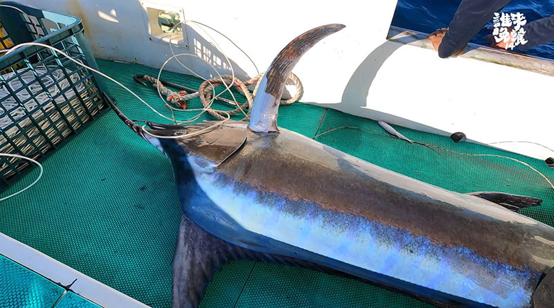 「一艘船只要你標到12條以上的旗魚,進港的時候你就可以插旗。所有海上看到你插旗子,你就是滿載了。民國60幾年剛開始在學討海的時候,每年都有人在插旗,旗魚整片海都是,沒有說出去找不到旗魚的,那時沒有流刺網。」