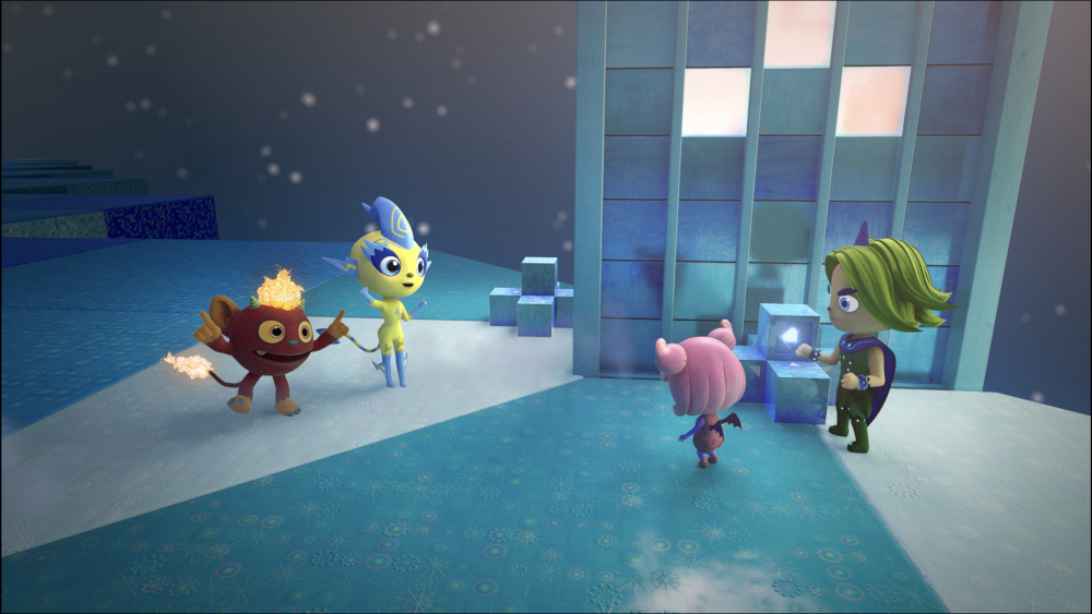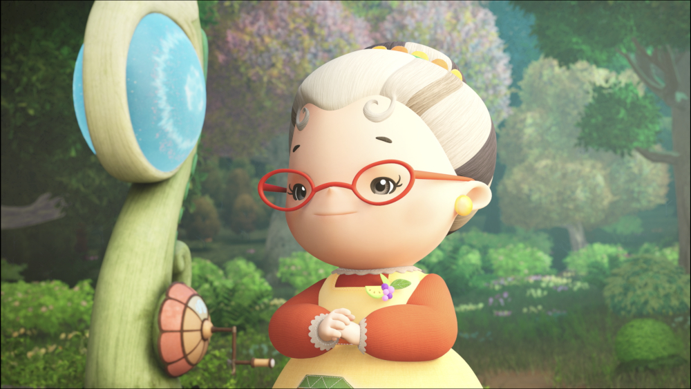 小妖們在樹屋訓練場進行日常訓練,聽到奶奶的呼喊聲,發現奶奶被困在了空中的三稜鏡水晶體裡。