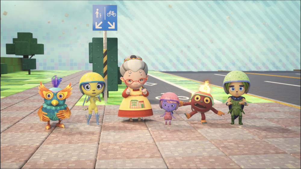 思考教室裡,奶奶帶著小妖們一起回顧本集影片,再次和大家分享交通安全裡其他的小知識。