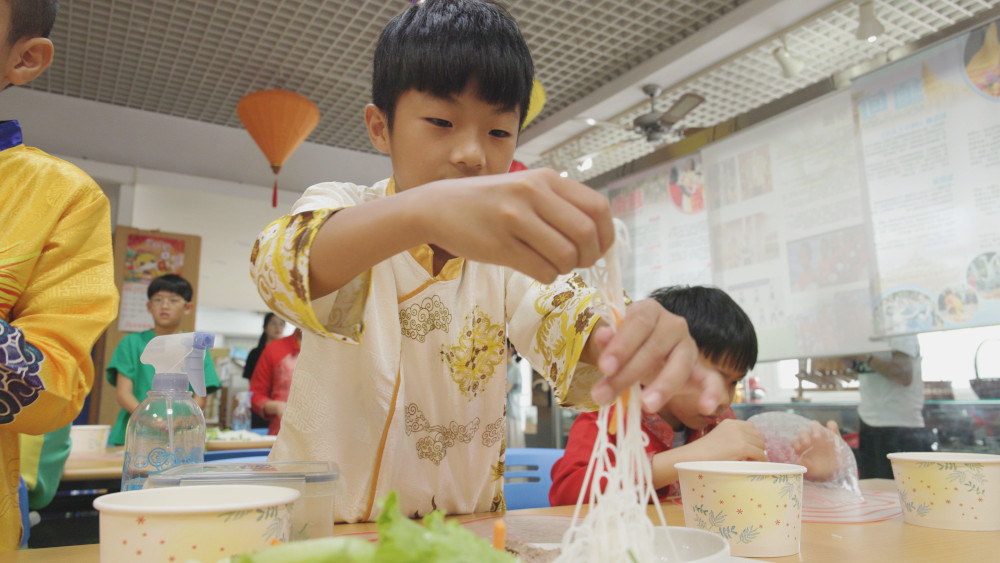 同學們在「異域故事館」了解1949年的遷徙歷史;走訪忠貞市場,記錄破酥包、米線與各式香料背後的族群故事。更跟隨越南媽媽學習製作春捲,親身體驗多元文化滋味。課程也結合數位工具,將走讀成果化作「忠貞社區文化折頁地圖」,作為新生入學禮物,讓孩子一眼就能了解社區歷史與文化。